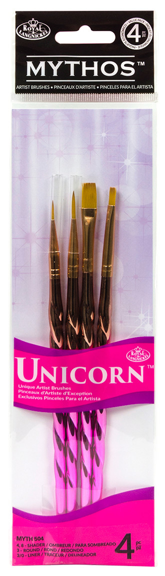 Pokud hledáte kvalitní štětce v neotřelém designu, jste na správné adrese. Tradiční značka výtvarných potřeb, vyšla na trh s originálním designem svých štětců. Řada Unicorn, se nechala inspirovat rohem jednorožce a vznikly tak barevně vyladěné a spirálovitě zatočené rukojeti, které právě připomínají roh Unicorna. Štětce jsou vhodné pro akvarel, akryl, kvaš i olejové barvy. Lze je použít pro malování větších ploch i drobných detailů. Štětiny jsou syntetické, snadno se čistí a udržují. V sadě jsou 4 různě velké štětce: 1x kulatý č. 3 1x kulatý/ostrý (pro tenké linie) č. 3 2x plochý č. 4, 8 Sada je dodávána v plastovém sáčku.