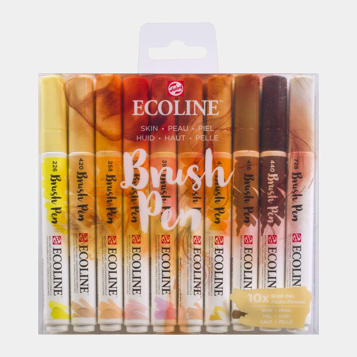 Pokud se ani na cestách nechcete vzdát malování, jsou pro vás štětečkové popisovače Ecoline tou pravou volbou. Barva na vodní bázi má řídkou konzistenci, pigmenty jsou jasné, syté s intenzivními a transparentními barvami. Díky přídavku arabské gumy se barvy krásně lesknou. Barva do štětce samovolně natéká, nešpiní ani přebytečně neodkapává. Štětcový hrot umožňuje díky změně tlaku na hrot, měnit sílu kreslené linie (lze dosáhnout linky široké až 6 mm). Popisovače tak mají široké využití od tenkých linií po silné linky, hodí se jak při jednoduchém skicování, tak při vybarvování velkých ploch. Pokud opomenete popisovač uzavřít, dojde k vyschnutí vody, nicméně barvu lze znovu aktivovat namočením do vody, bez ztráty psacího efektu. Barvy při práci rychle zasychají, nejsou však po zaschnutí fixované a po opětovném namočení je lze opakovaně rozmývat a ladit tak výsledný výtvarný projekt. Díky transparentnosti se popisovače nehodí na tmavý papír, kde barva nevynikne. Sada obsahuje pastelové odstíny - 226, 420, 258, 381, 390, 374, 439, 416, 440, 728 Vybírat můžete z dalších tématických i různě velkých sad. Vyrobeno v Holandsku.