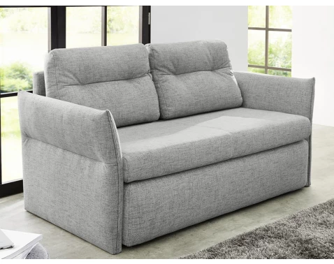 Praktická dvoumístní pohovka s rozkládací funkcí se kdykoliv snadno promění v lůžko pro hosty, na kterém se pohodlně vyspí dvě osoby. Včetně opěrných polštářů a úložného prostoru, kam uložíte třeba ložní prádlo a doplňky. Očalouněna šedou tkaninou. Pohovka je tak naprostor flexibilní a vždy připravena na jakoukoliv denní situaci. Ideální do malého bytu anebo pokoje pro hosty.