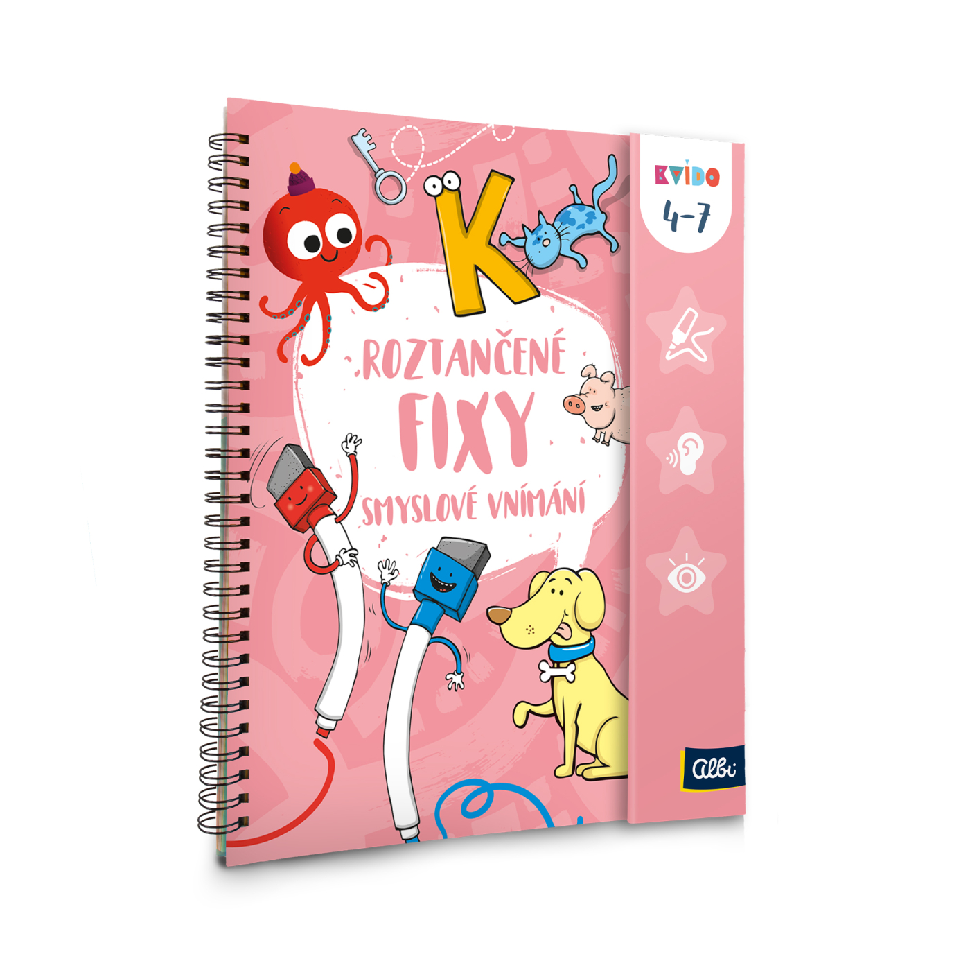 Procvičujte grafomotoriku s Kvídem a roztančenými fixami. 50 stran plných úkolů pro předškoláky a malé školáky. Díky mazatelným fixům lze sešit vyplňovat opakovaně. Sešit se zavíráním na magnet a 2 barevné fixy.