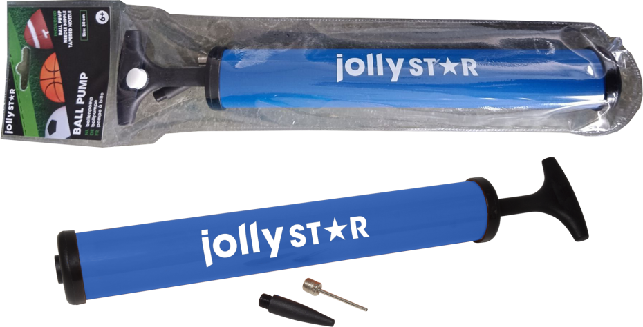 Pumpa – pro nafouknutí různých míčů, s hadičkou o délce 13 cm, jehlou a 2 koncovkami, materiál plast. Dvě barevná provedení modrá a černá.