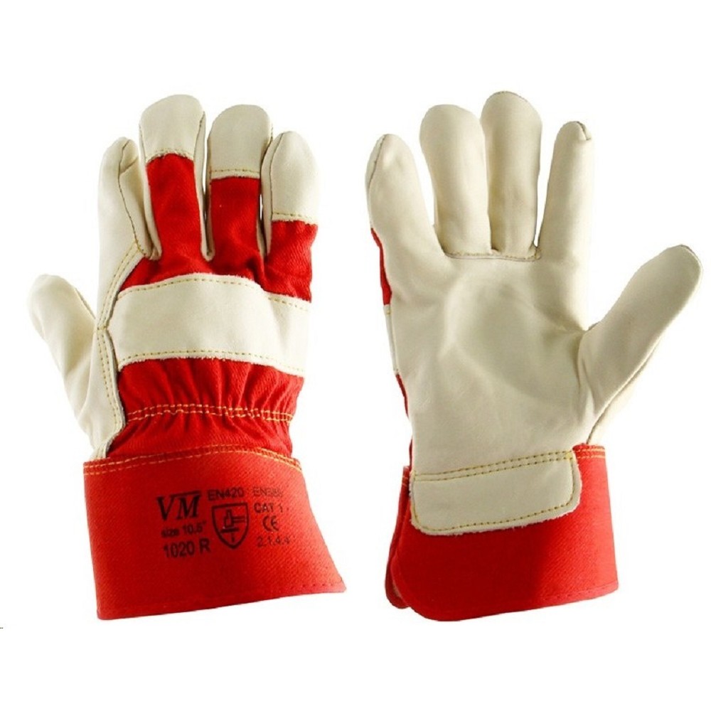 Rukavice 1020R dlaně ze silné lícové hovězí kůže Kombinovaná pracovní rukavice do středně těžkého prostředí Materiálové složení: dlaň z velmi silné a pevné hovězinové usně, hřbet a manžeta z husté tkané bavlny Podšívka: bavlněný textil v dlani Velikost: 10,5“ Norma: EN 388, EN 420 Použití: proti mechanickým rizikům, CAT 2, středně těžké a těžké prostředí Balení/karton: 120 párů