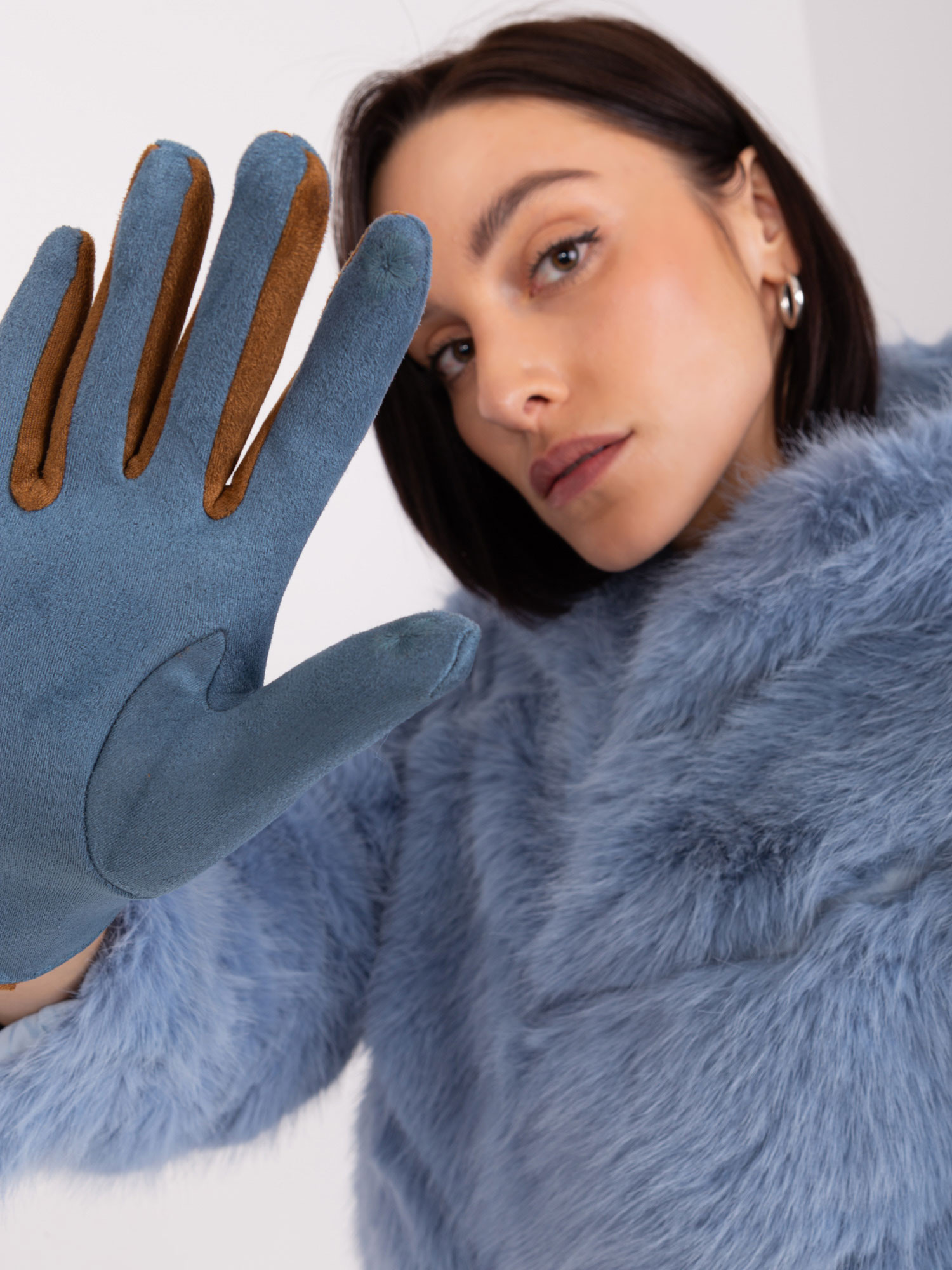 Špinavě modré rukavice s pletenými pásky . kód produktu: AT-RK-238601.25P dominantní vzor: hladký
