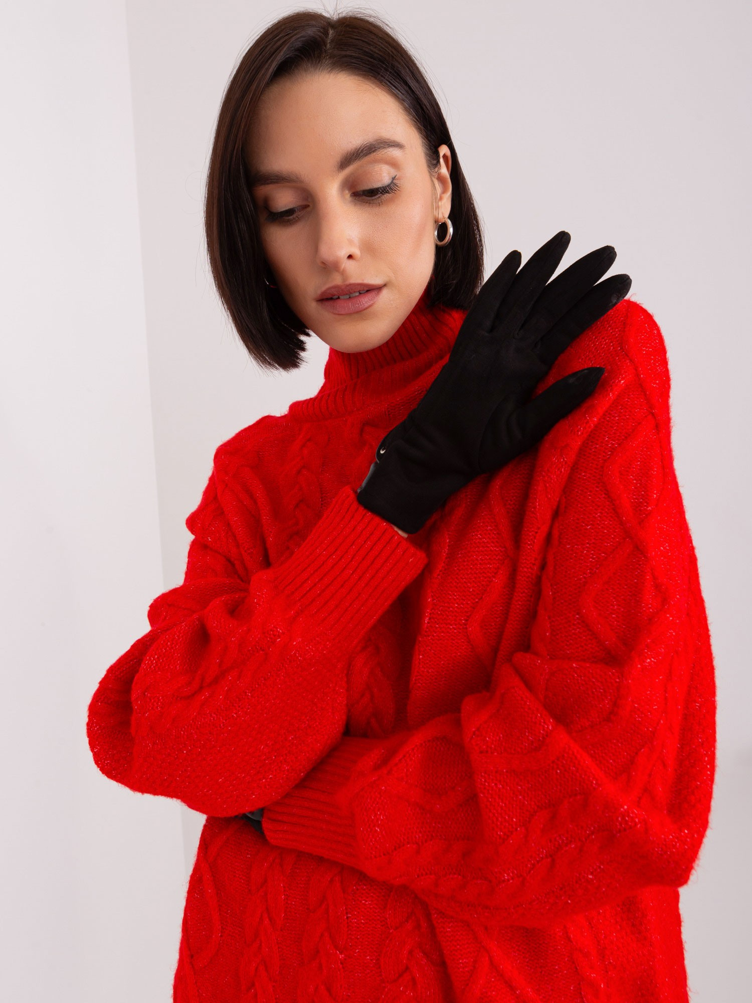 Černé dámské rukavice s dotykovou funkcí . kód produktu: AT-RK-239507.26P dominantní vzor: různorodá textura tkaniny