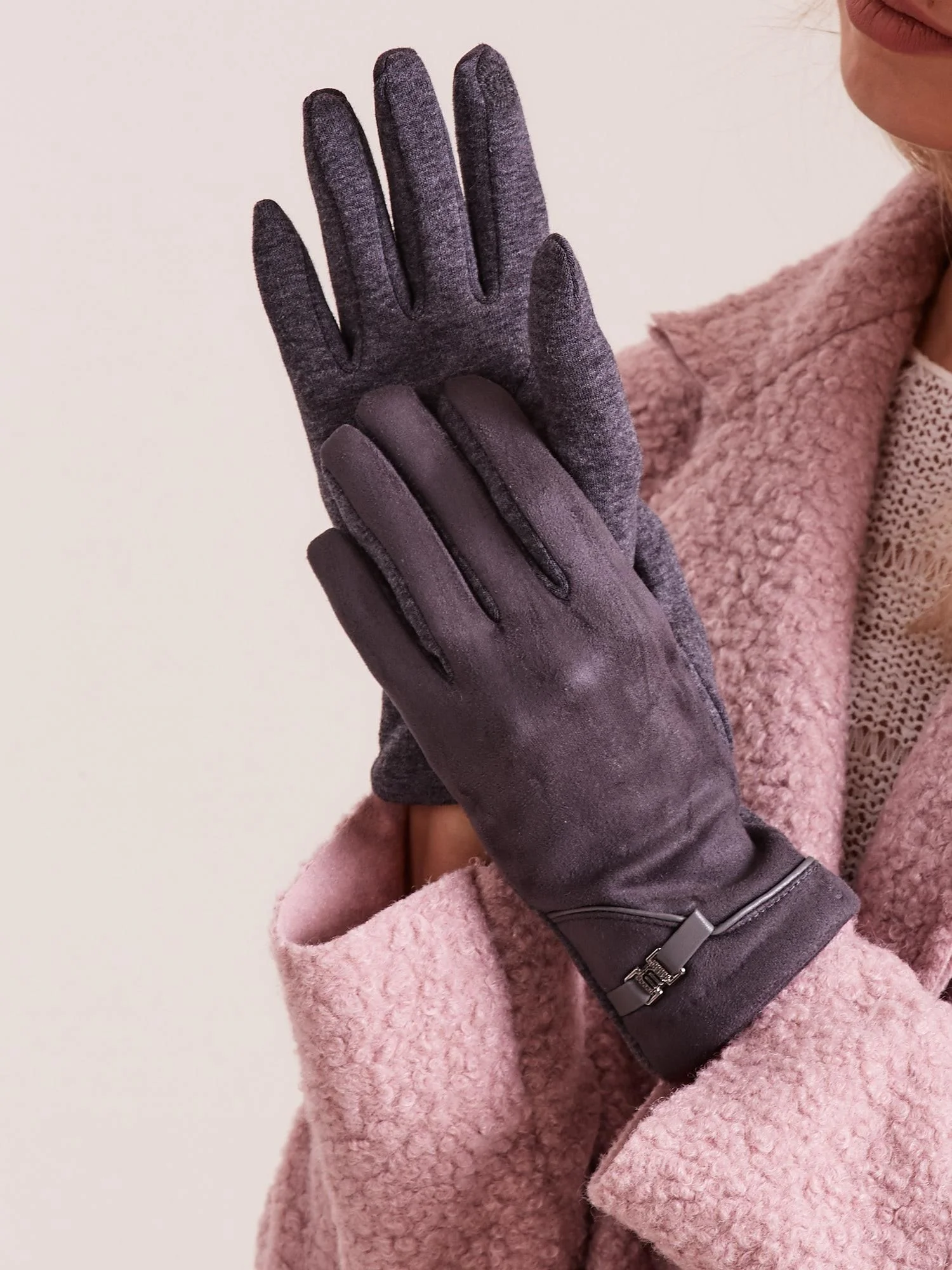 Dámské elegantní rukavice tmavě šedé Doplňky: přezka způsob mytí: ruční mytí