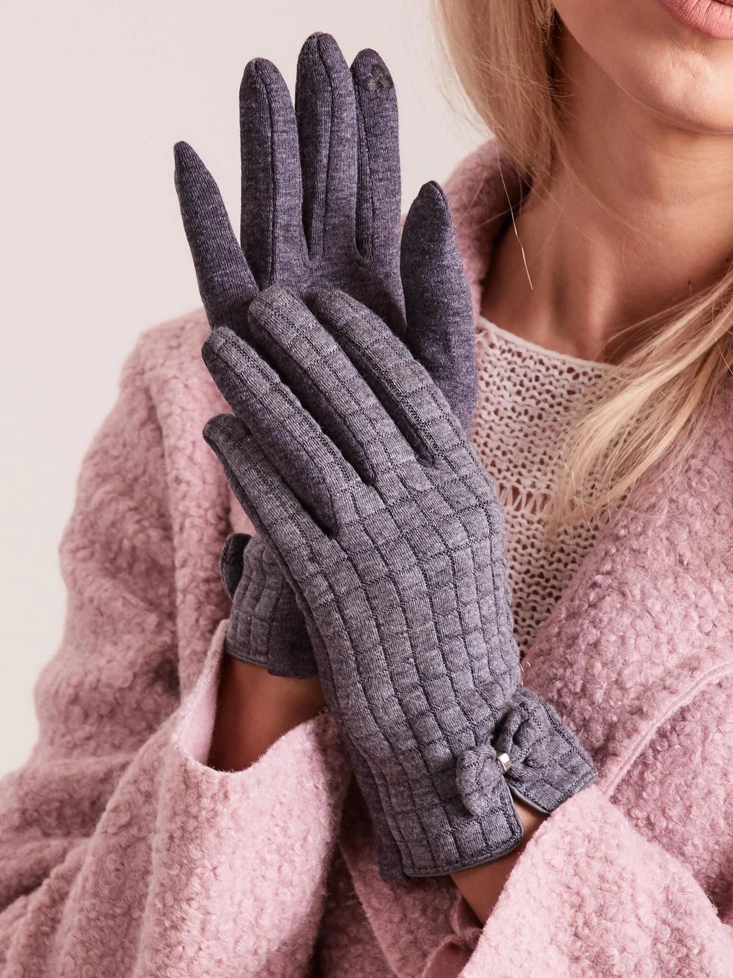 Dámské kostkované rukavice tmavě šedé příslušenství: mašle složení látky: 50 % kůže, 50 % akryl způsob praní: praní v pračce na 30 °C