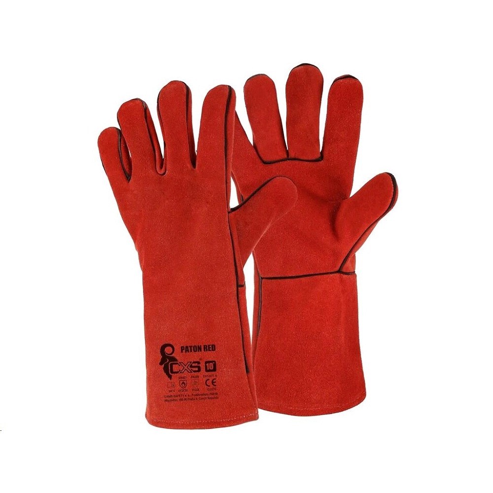 Rukavice CXS PATON RED svářecí červené ve dlaní 35 cm Celokožené svářečské rukavice s bavlněnou podšívkou v dlani a hřbetu, šité kevlarovou nití. Materiálové složení hovězinová štípenka CAT cat. 2 Normy EN 420, EN 388, EN 12477/A Délka 35 cm Velikosti 10; 11 Značka CXS Svrchní materiál hovězinová štípenka Barva červená