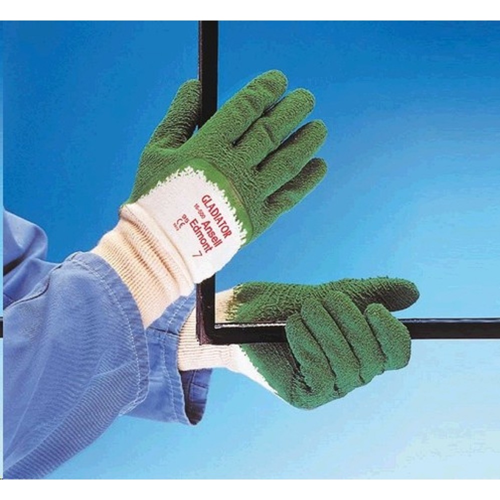 Rukavice GLADIATOR 16-500 máčené v kaučuku sklenářské, protiskluzová úprava 8 zeleno-bílé