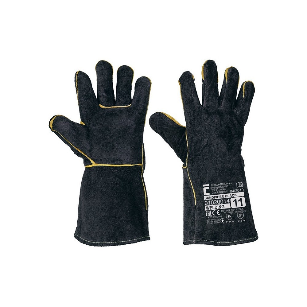 Rukavice SANDPIPER RED svářečské zimní v délce 35 cm z hovězí štípenky černé • celokožené rukavice z hovězí štípenky • s bavlněnou podšívkou a krytými švy • Certifikát: svářecí práce - typ A • Velikost: 11 • Barva: černá