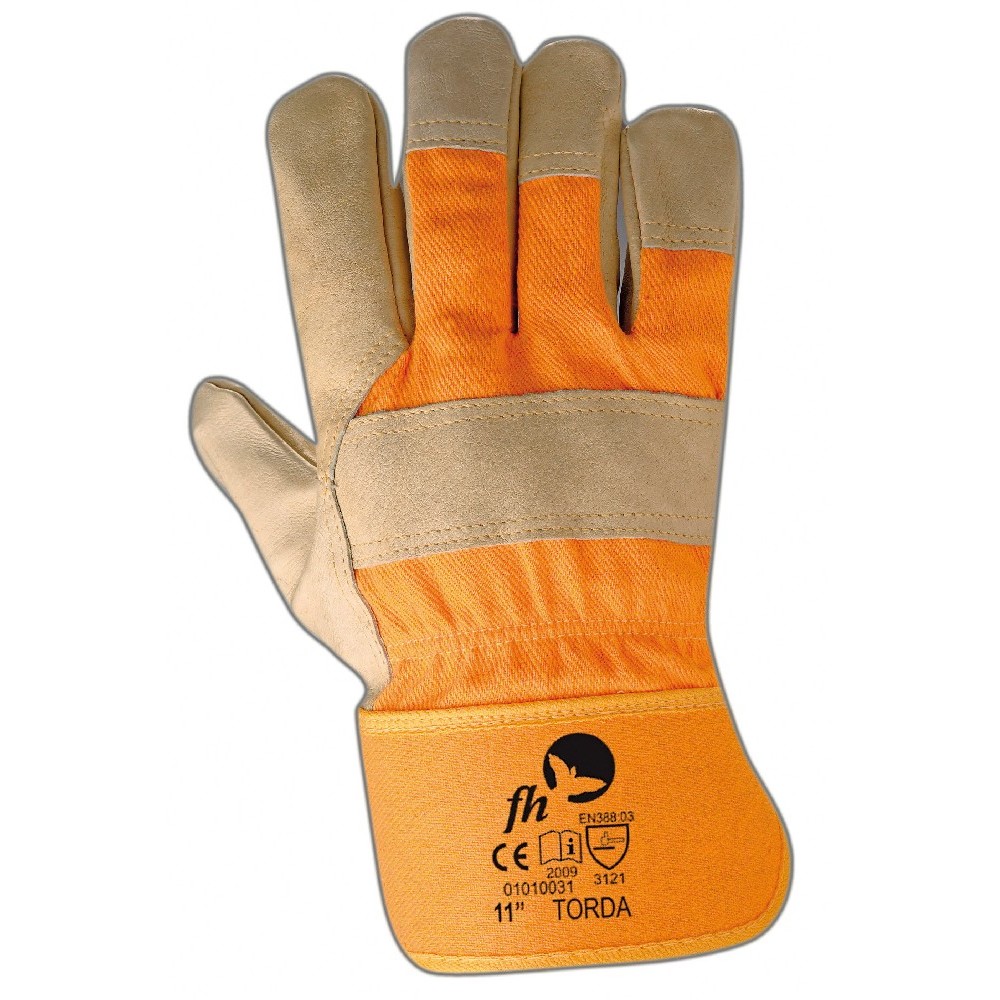 Rukavice TORDA kombinované, - z jemné lícové kůže na dlani a prstech, - hřbet z kvalitní bavlny - Barva: žlutá/ béžová - Velikost: 11 - EN388