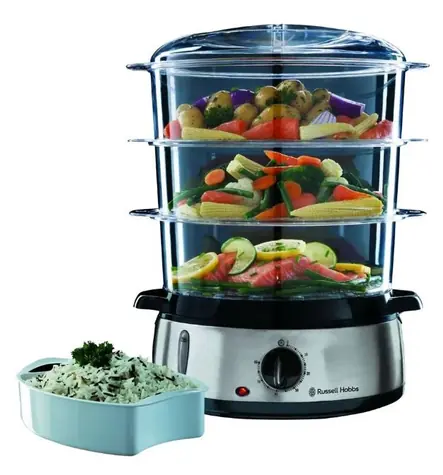 Russell Hobbs Cook@Home 19270-56 černá / Parní hrnec / 800 W / 9L / 3 nádoby / časovač / nerez