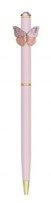 Růžová propiska s okrasným motýlkem a kamínkem na vršku. Propiska se otevírá praktickým otočením spodní části a dobře padne do ruky. Barva inkoustu: modrá