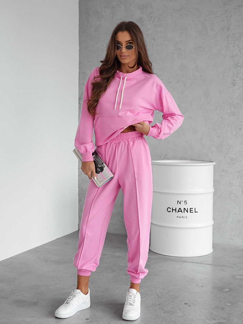 Růžový dámský teplákový komplet - mikina se stojáčkem a kalhoty (82162) odstíny růžové L (40)