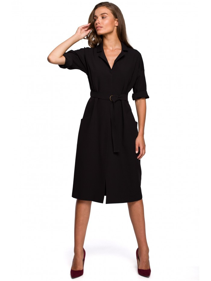 Domů Oblečení a móda Dámské oblečení Dámské šaty S230 Midi košilové šaty s kapsami - černé EU M