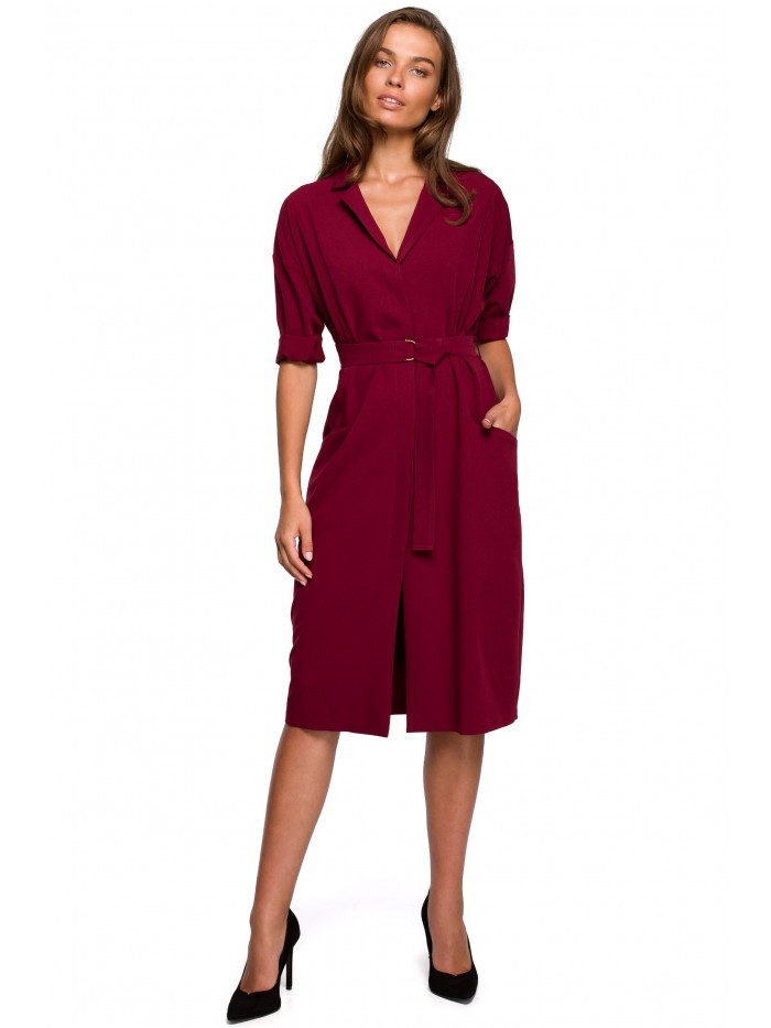 Domů Oblečení a móda Dámské oblečení Dámské šaty S230 Midi košilové šaty s kapsami - vínové EU L