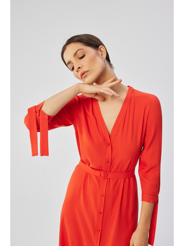 Domů Oblečení a móda Dámské oblečení Dámské šaty S365 Viskózové šaty áčkového střihu s vázacími rukávy - korálová barva EU XXL