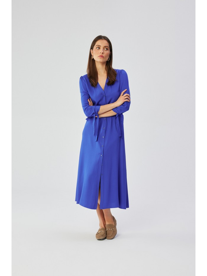 Domů Oblečení a móda Dámské oblečení Dámské šaty S365 Viskózové šaty áčkového střihu s vázacími rukávy - modré EU XXL