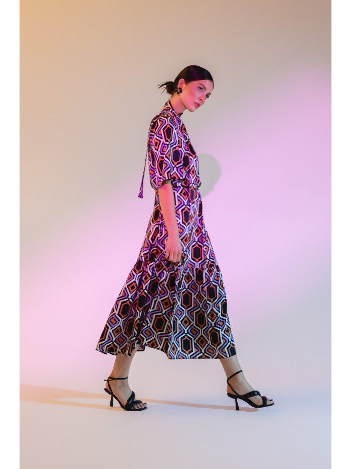 S367 Maxi šaty s potiskem a volánem - model 2 EU S