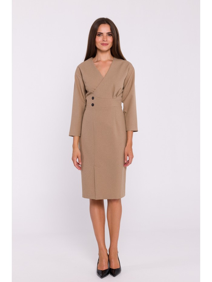 Domů Oblečení a móda Dámské oblečení Dámské šaty S374 Šaty v pase na knoflíky - béžové EU S