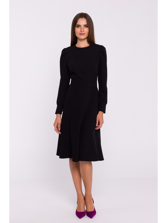 Domů Oblečení a móda Dámské oblečení Dámské šaty S378 Rozšířené šaty s páskem - černé EU XXL