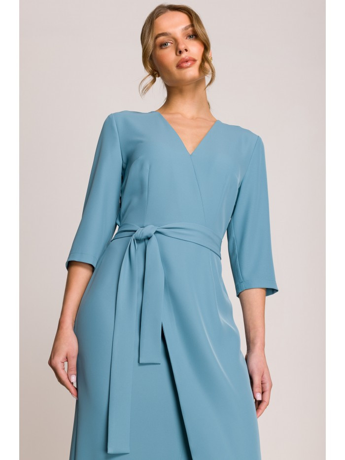 S396 Šaty se zavinovacími detaily ve střední délce - nebesky modré EU L
