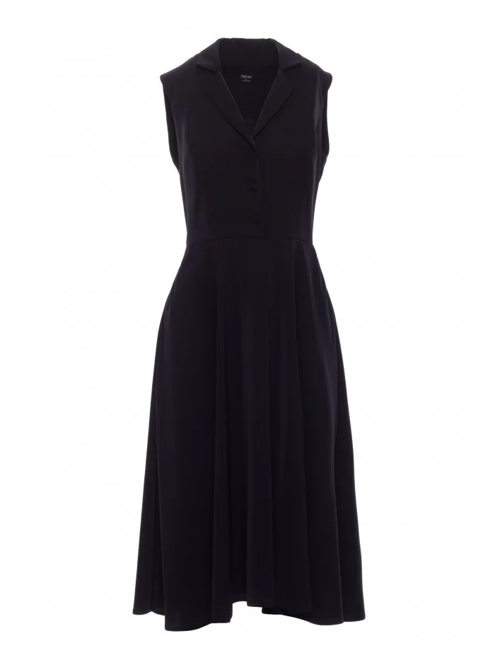 materiál: 95% polyester 5% elastan Materiál: hladká tkanina s jemným leskem PODROBNOSTI O PRODUKTU Výstřih: hluboký výstřih do V s klasickým límcem Rukávy: bez rukávů Zapínání: skrytý boční zip, zapínání na knoflíky Kapsy: boční kapsy Podšívka: žádná Model: S409 Navrženo a vyrobeno v Polsku Modelka je vysoká 170 cm a má na sobě velikost S STYL A STŘIH Střih: vypasovaný top s rozšířenou sukní Tvar: vypasovaný střih, vymezený pasVELIKOSTSMLXLA36 cm37cm38cm39cmB46cm48,5cm51cm53,5cmC36cm38,5cm41cm43,5 cmD62cm64,5cm67cm69,5cmE113cm116cm119cm122cm