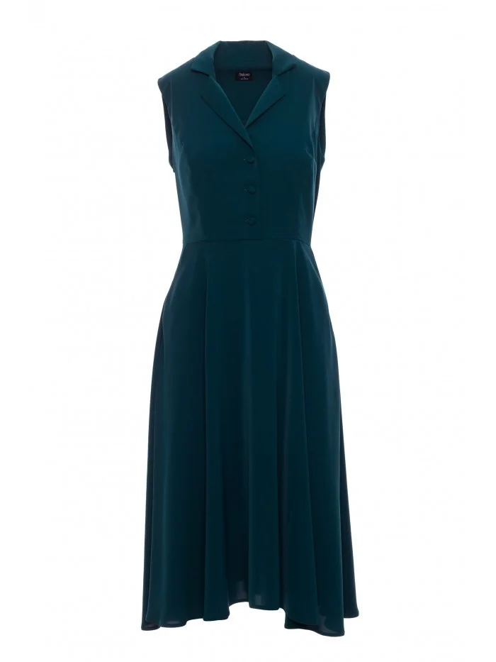materiál: 95% polyester 5% elastan Materiál: hladká tkanina s jemným leskem PODROBNOSTI O PRODUKTU Výstřih: hluboký výstřih do V s klasickým límcem Rukávy: bez rukávů Zapínání: skrytý boční zip, zapínání na knoflíky Kapsy: boční kapsy Podšívka: žádná Model: S409 Navrženo a vyrobeno v Polsku Modelka je vysoká 170 cm a má na sobě velikost S STYL A STŘIH Střih: vypasovaný top s rozšířenou sukní Tvar: vypasovaný střih, vymezený pasVELIKOSTSMLXLA36 cm37cm38cm39cmB46cm48,5cm51cm53,5cmC36cm38,5cm41cm43,5 cmD62cm64,5cm67cm69,5cmE113cm116cm119cm122cm