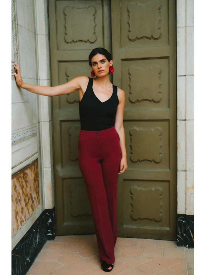 63% polyester 33% wiskoza 4% elastan LÁTKA Tkanina: hladká tkanina s měkkým povrchem PODROBNOSTI O PRODUKTU Pas: střední výška Zapínání: knoflík vpředu a skrytý zip Kapsy: boční kapsy Nohavice: dlouhé, rovné, s řasením Podšívka: žádná Model: S418 Navrženo a vyrobeno v Polsku Modelka je vysoká 174 cm a nosí velikost S STYL A STŘIH Styl: klasické kalhoty na míru Tvar: vypasované v pase a na bocích, rovné nohavice Délka: po celé délce, až na zemVELIKOSTSMLXLXXLA35 cm37,5cm40cm42,5cm45cmB46cm48,5cm51cm53,5cm56cmC27cm28cm29cm30cm31cmD83cm83cm83cm83cm83cmE108cm108,5cm109cm109,5cm110cm