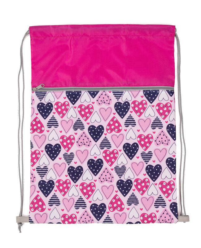 Sáčky na cvičky jsou praktickým doplňkem školní aktovky pro uložení přezůvek či věcí na tělocvik. Vodoodpudivý pevný materiál udrží věci v suchu. Kapsa na zip oddělí boty od ostatního oblečení. Stahovací šňůrka spojená se spodní částí promění sáček v malý batůžek na záda.