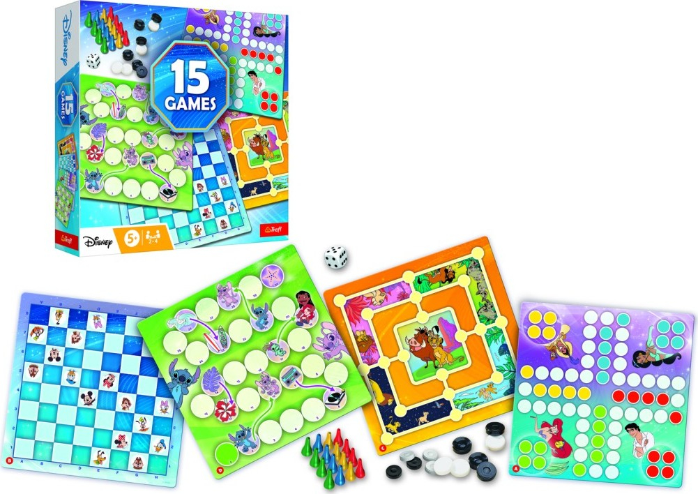 Set klasických her pro celou rodinu s oblíbenými pohádkovými postavami Disney. Sada obsahuje tradiční hry: Člověče, nezlob se!, Mlýn Hadi a žebříky, Dámu a další hry známe po celém světě. Obsah balení: oboustranné herní plány, 1 kostka, 24 kamenů, 16 barevných hracích figurek, pravidla. Pro 2 - 4 hráče. Rozměry balení: 24 x 24 x 6 cm. Vhodné pro děti od 5 let.