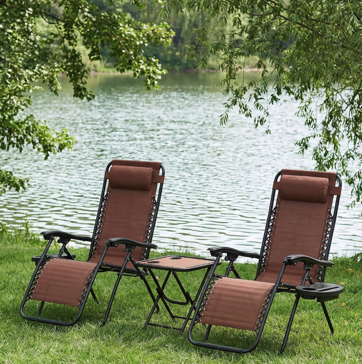 Sada zahradních lehátek se stolem je ideální pro pohodlnou relaxaci na terase, balkonu, na zahradě i u vody. Sada obsahuje dvě polohovací lehátka a praktický skládací stůl, takže si můžete užívat relaxaci ve dvojici s maximálním pohodlím. Moderní béžový design vypadá elegantně a snadno se hodí do jakéhokoli exteriéru. Lehátka jsou vyrobena z pevné ocelové konstrukce s práškovou povrchovou úpravou, která chrání před korozí a zaručuje dlouhou životnost. Polohování umožňuje plynulý přechod ze sedu do relaxační polohy s možností aretace zvoleného sklonu. Měkká nastavitelná opěrka hlavy a ergonomické loketní opěrky zvyšují pohodlí při relaxaci. Sada obsahuje skládací stolek s praktickými otvory na nápoje a drobnosti, takže máte vždy po ruce vše potřebné. Ve složeném stavu zabírá celá sada minimum místa, což usnadňuje její skladování a přenášení. Pro zajištění dlouhé životnosti materiálu je nutné chránit lehátka před přímým deštěm a dlouhodobým slunečním zářením. Vlhkost a UV záření mohou časem látku oslabit, což může vést k jejímu poškození a následně k roztržení látky.Specifikace: Typ produktu: zahradní lehátko se stolem Počet lehátek: 2 ks Barva: hnědá Konstrukční materiál: ocel s práškovým nástřikem Materiál sedáku: textolín Polohování: ano, s aretací polohy Opěrka hlavy: nastavitelná Stůl: skládací s držáky na nápoje Nosnost: 150 kg Odolnost proti povětrnostním vlivům: ano Hmotnost sady: 16,5 kg