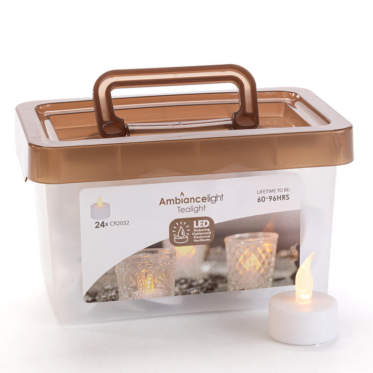 Dodáváme v sadě 24 kusů svíček (každá svíčka je opatřena baterií CR2032), součástí je praktický úložný box.