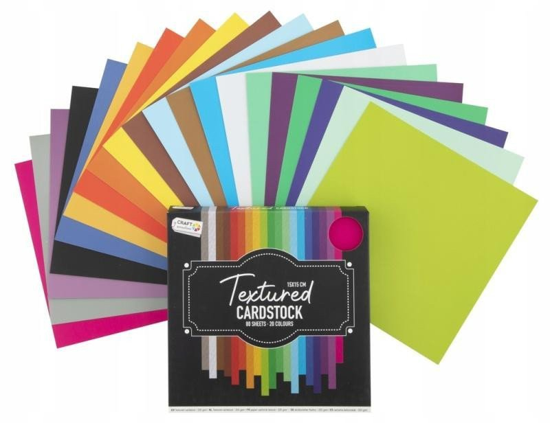 Papíry s texturou: obsahují 80 listů, 220 gsm - 20 barev. Rozměr: 15 x 15 cm