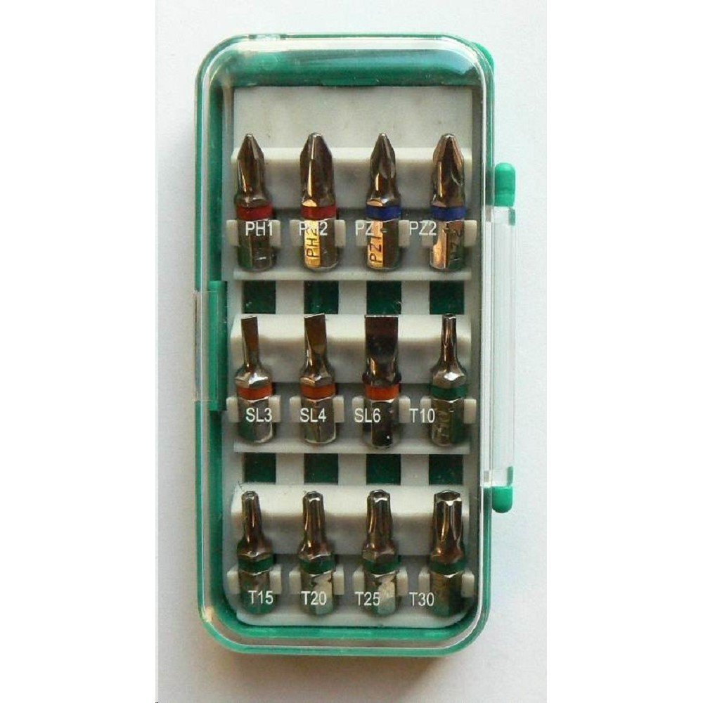 Sada bitů 1/4" 12 dílů GOLA Sada bitů 1/4" 12 dílů GOLA je skvělým doplňkem do vaší domácí dílny nebo profesionálního vybavení. Tato sada obsahuje 12 kvalitních bitů, které vám umožní pracovat s různými typy šroubů a hmoždinek. Sada bitů je vybavena různými typy hlav, včetně plochých, křížových, Torx a dalších, což vám poskytne širokou škálu možností pro vaše projekty. Obsahuje: bit PH1, PH2 bit PZ1, PZ2 bit plochý 3, 4, 6 mm bit Torx s otvorem T10, T15, T20, T25, T30 V plastové krabičce.