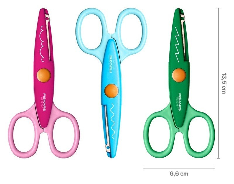 • Dětské nůžky Fiskars pro stříhání ozdobných tvarů z papíru.• Nepoužívejte na stříhání látky.• Pro děti od 4 let.• Nůžky jsou barevně označené pro snadnou rozpoznatelnost.• Divoké vzory a zábavné okraje nikdy nebyly snazší• Přidejte zábavné, dekorativní okraje k jakémukoli projektu• Symetrické rukojeti pro praváky i leváky• Tvarované ocelové čepele stříhají ostré, čisté vzory