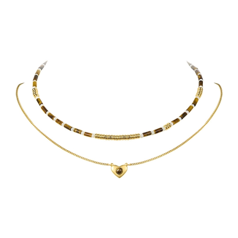 Tato elegantní sada náhrdelníků z limitované kolekce Podzimní Harmonie přináší do vašeho šperkového arzenálu nejen šarm, ale i kouzlo vrstvení. Vrstvený styl kombinuje dva nádherné náhrdelníky – jeden z nich zdobený tygřím okem a druhý medailonkem ve tvaru srdíčka, do kterého je zasazeno další tygří oko. Tento přírodní kámen je ceněný pro své ochranné vlastnosti, a přidává celému outfitu sofistikovaný nádech. Zemitá barevnost tygřího oka ladí s přicházející podzimní atmosférou, kdy příroda září ve zlatých a hnědých odstínech. Tento set náhrdelníků tak dokonale podtrhne vaši osobnost během procházek v chladnějším počasí. Náhrdelníky se hodí nejen na každodenní nošení, ale i jako stylový doplněk na večerní příležitosti. Kupte si i další šperky z naší autorské kolekce Podzimní Harmonie a objevte, jak můžete svůj outfit povýšit do sfér neotřelé elegance a luxusu.