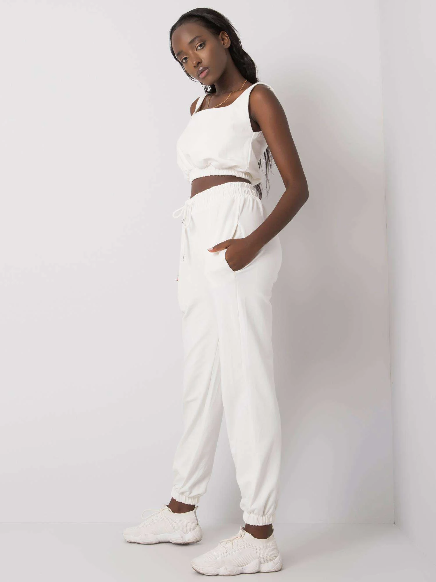 Dvoudílná sada v barvě ecru. sada obsahuje: top, kalhoty složení látky: 90 % bavlna, 10 % elastan způsob praní: praní v pračce na 30 °C Modelka má na sobě velikost S. Rozměry modelky: výška 170 cm, poprsí 84 cm, pas 60 cm, boky 93 cm. Rozměry soupravy ve velikosti S měřené na plocho: šířka v podpaží - 40 cm, délka topu - 38 cm, šířka v pase - 36 cm, délka kalhot - 93 cmVelikost Alt.VýškaObvod hrudníku hrudníkExterní. délka. rukávVnitřní. délka rukávůS36160-164825949M38162-172866151L40164-174916353