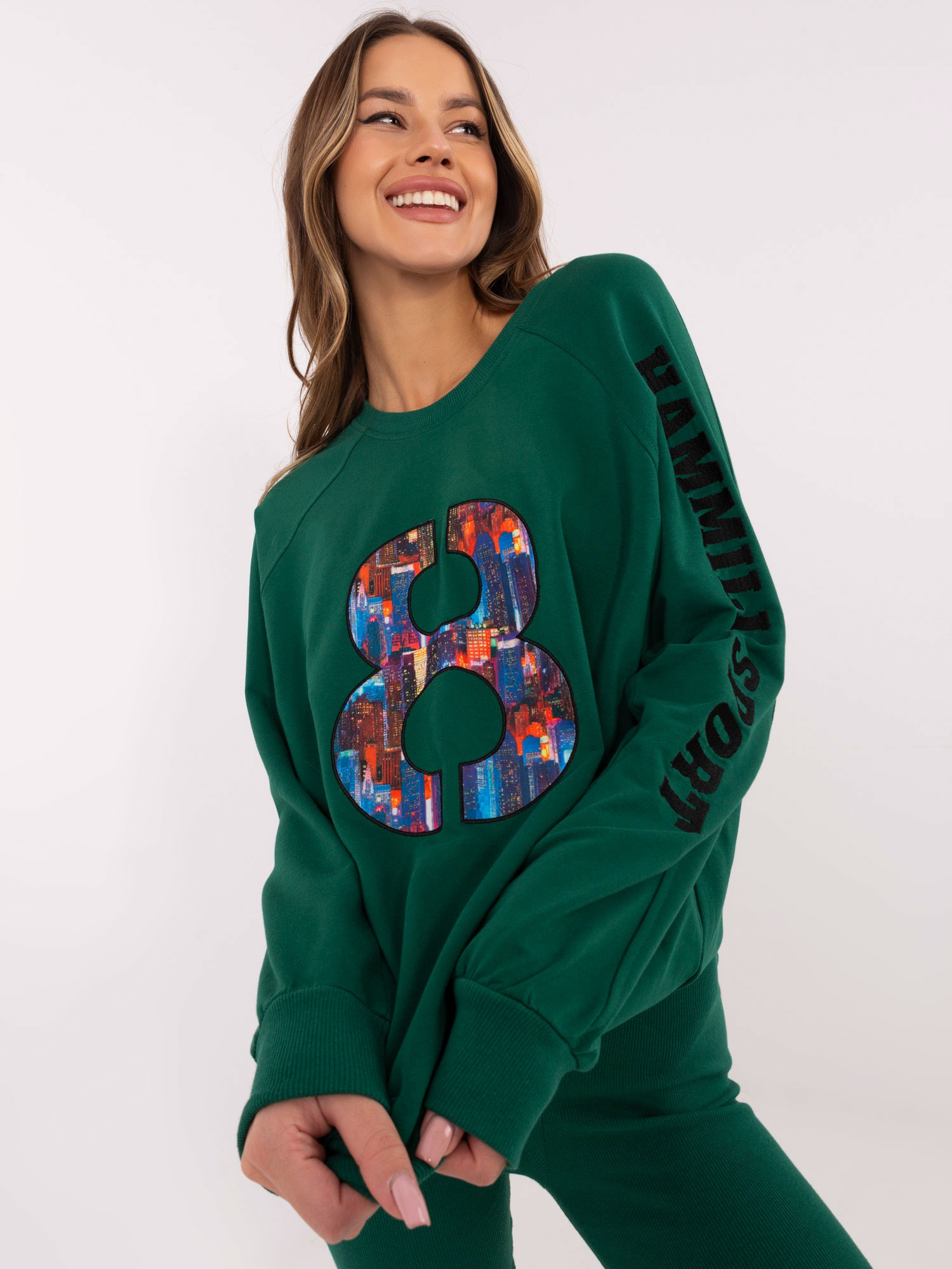 složení materiálu halenky: 72 % bavlna, 22 % polyester, 6 % elastan; složení materiálu legín: 90 % bavlna, 10 % elastan Modelka má na sobě jednu velikost. míry modelky: výška 176 cm, prsa 90 cm, pas 62 cm, boky 94 cm. Rozměry mikiny jedné velikosti měřené na plocho: šířka mikiny v podpaží - 62 cm, délka mikiny - 74 cm, délka rukávu - 43 cm (od podpaží), obvod v bocích - 110 cm. Rozměry legín jedné velikosti: šířka v pase - 29 cm (na plocho), šířka v pase - 48 cm (při natažení), délka legín - 101 cm.