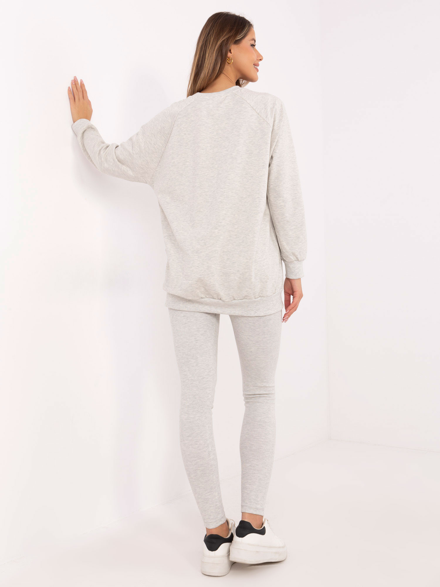 složení materiálu halenky: 72 % bavlna, 22 % polyester, 6 % elastan; složení materiálu legín: 90 % bavlna, 10 % elastan Modelka má na sobě jednu velikost. míry modelky: výška 176 cm, prsa 90 cm, pas 62 cm, boky 94 cm. Rozměry mikiny jedné velikosti měřené na plocho: šířka mikiny v podpaží - 62 cm, délka mikiny - 74 cm, délka rukávu - 43 cm (od podpaží), obvod v bocích - 110 cm. Rozměry legín jedné velikosti: šířka v pase - 29 cm (na plocho), šířka v pase - 48 cm (při natažení), délka legín - 101 cm.