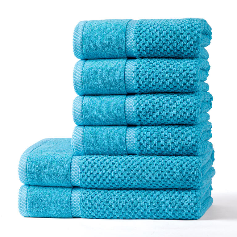 Velká sada prémiových osušek a ručníků z kolekce Modena ve svěží tyrkysové barvě přinese do vaší koupelny skutečný komfort a eleganci. Nejen, že skvěle vypadají, ale díky unikátnímu zpracování a vysoké gramáži jsou výjimečně měkké, savé a poslouží vám po dlouhou dobu - neztrácí barvu a vzhled ani při častém praní. Nechybí jim praktické poutko na zavěšení.