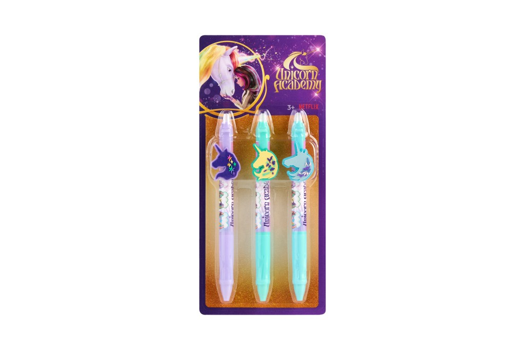 Sada gelových gumovacích tužek s Unicorn Academy, 3 ks – stylová sada gelových tužek s motivem oblíbeného hrdiny Harry Potera. Píší hladce a pohodlně, ideální do školy, na poznámky i kreativní psaní. Skvělý doplněk pro všechny fanoušky Unicorn Academy.