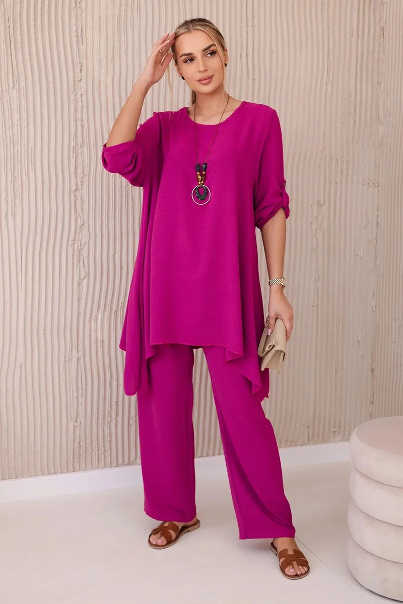 Domů Oblečení a móda Dámské oblečení Dámské halenky a košile Sada halenky + kalhot s přívěskem tmavě fialová UNI