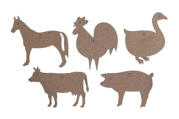 Sada lepenkových výřezů ve tvaru zvířátek z farmy. Po dozdobení můžete své výtvory zavěsit jako součást dekorace nebo přilepit na špejli a můžete se zvířátky hrát divadlo.Tvary: zvířata z farmy - kráva, prase, kůň, kohout a husaVelikost: cca 6x10 cm, tloušťka lepenky 2 mmMnožství v balení: 5 ks