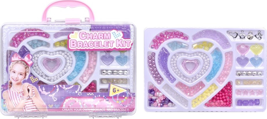 Sada korálků na výrobu vlastních náramků a náhrdelníků. Sada obsahuje korálky různých barev a tvarů, šňůrku. Praktické balení kufříku s uchem a dělenými přihrádkami na korálky. Vhodné pro děti od 6ti let.