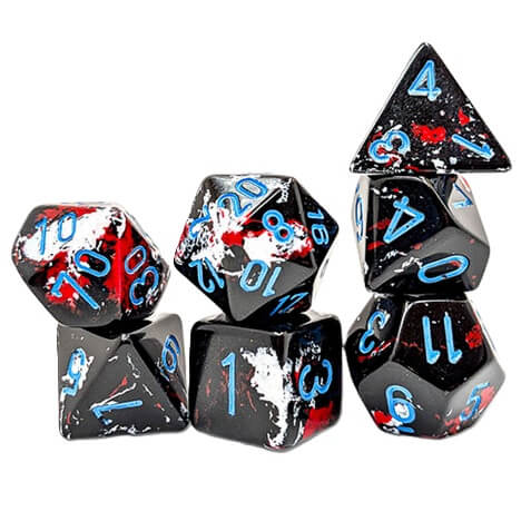 Sada kvalitních kostek Chessex Brush Polyhedral Dark Side/blue obsahuje 7 barevných kostek pro hráče RPG a jiných her. Brush design těchto hracích kostek kombinuje kvalitu se stylovým uměleckým provedením. V balení naleznete tyto typy kostek: 1x D4, 1x D6, 1x D8, 1x D10, 1x D12, 1x D20 a 1x kostku s procenty.Praktická plastová krabička zajistí, že Vaše kostky zůstanou stále pohromadě. Brush Polyhedral Dark Side/blue kostky jsou vhodné např. pro hry Dungeons and Dragons, Cthulhu, Runequest a pro všechny hry, u nichž potřebujete countery.