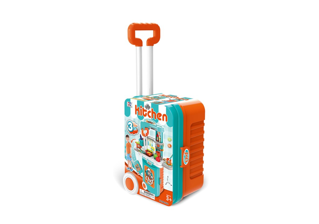 Sada kuchyňka v praktickém kufříku na kolečkách je ideální pro malé kuchaře a kuchařky, kteří se chtějí vydat na kulinářská dobrodružství! Tato multifunkční kuchyňka se dá rozložit do stolní nebo klasické verze, což zaručuje flexibilitu a pohodlí při hraní. Součástí sady je spousta doplňků, které zahrnují nádobí, potraviny a další potřebné předměty pro přípravu jídel. Kuchyňka má zvukové a světelné efekty, které přidávají na realističnosti a zábavě. Provoz na 1×1,5 V AAA mikrotužkovou baterii (není součástí balení). S rozměry 22 × 17 × 48 cm je kompaktní a snadno přenosná, ideální pro hraní doma nebo na cestách. Perfektní dárek pro děti, které si rády hrají na malé kuchaře!