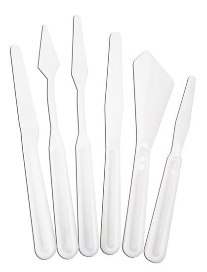<p>Sada 6 kusů umělohmotných špachtlí a nožů, které jsou vhodné pro hobby i profesionální malbu temperovými, akrylovými a různými jinými barvami, efektními pastami či akrylovými gely. Vynikající pomůcka zejména pro studenty a žáky na školách nebo pro začátečníky. Špachtle a nože mají různé tvary pro dosažení různých efektů. Balení obsahuje: 2 x malířský nůž, 1 x paletový nůž, 3 x malířská špachtle.</p>