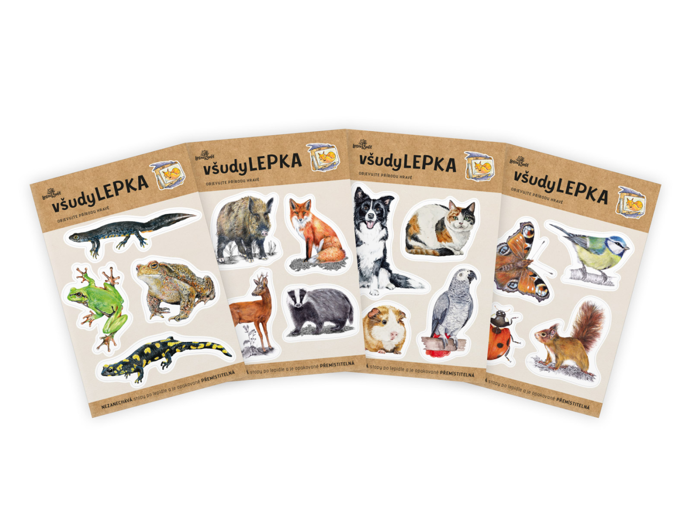 Lepí na stěnu, nábytek i sklo VšudyLEPKA nabízí nekonečné možnosti pro hru a učení doma, ve škole, nebo třeba v družině. Připravíte s ní zábavné hry, vzdělávací aktivity, nebo využijete jako pomocníka při tvoření. Také je oblíbenou dekorací do dětského pokoje. Nezanechává stopy po lepidle. Lze ji opakovaně přemisťovat z místa na místo. Pevná a odolná. Šetrná ke všem povrchům. VšudyLEPKY jsou také oblíbeným pomocníkem pro třídění a rozlišování ve školách, školkách, nebo doma mezi sourozenci. Obrázkem snadno označíte, komu patří skříňka, šuplík, nebo postýlka. A případně to také snadno změníte. VšudyLEPKA z Lesního světa Balení obsahuje 4x arch s všudylepkami, rozměr archu: 24 × 16 cm Zabaleno v sáčku. Rozměr všudyLEPKY je cca 7,5 x 6 cm. VšudyLEPKY vyrábíme v Hradci Králové. Autorem kreseb jsou čeští ilustrátoři Obrázky jsou chráněny autorskými právy. Všechny výrobky jsou vyrobeny s ohledem na životní prostředí. Jirka Novák, malíř a ilustrátor Tvoří převážně realistické kresby fauny a flóry. Ilustrátor učebních pomůcek, naučných tabulí a her s tématikou českých živočichů. Více o Jirkovi Detail Detail Detail 10 kreativních tipů na práci s všudyLEPKOU Nevíte, co doma s dětmi? VšudyLEPKY vám otevírají možnost ke spoustě her a aktivit. Připravili jsme pro vás několik tipů. Ať už máte v plánu tvořit společně s dětmi, nebo je nechat pracovat samostatně. To mě zajímá