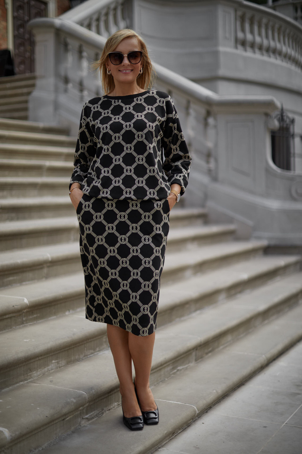 Tato dvoudílná dámská souprava si získala srdce našich zákazníků. Je navržena v souladu se zásadami značky, tedy s ohledem na zralé ženy. Byl celý ušit z měkkého květinového úpletu. Horní díl je boxerský, rukávy kimonové a spodní lem je nastavitelný pomocí stoperů. Lze jej nosit volně nebo rovně. Mírně vypasovaná sukně s kapsami dodává módní nádech. Délka sahá ke kolenům. Díky široké gumě všité do pasu umožňuje sukně dokonalé přizpůsobení postavě majitelky. Tento promyšlený střih poskytuje pohodlí ženám všech velikostí. Elastan 5 % Nylon 20 % Viskóza 75 % Velikost Obvod beder Obvod prsou Obvod v pase 3694-98 cm84-88 cm70-74 cm3898-102 cm88-92 cm74-78 cm40102-106 cm92-96 cm78-82 cm42106-110 cm96-100 cm82-86 cm44110-114 cm100-104 cm86-90 cm46114-118 cm104-108 cm90-94 cm48120-124 cm110-114 cm96-100 cm