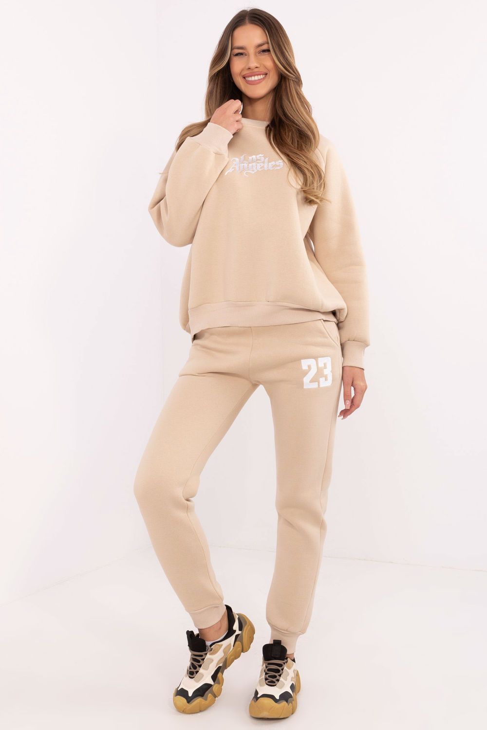 Dámský teplý komplet je spojením stylu a pohodlí, ideální na každodenní nošení. Skládá se z mikiny a kalhot vyrobených z kombinace bavlny a polyesteru, co zajišťuje pohodlí a odolnost materiálu. Model se vyznačuje ležérním stylem, díky čemuž je skvělou volbou do každodenních situací, jako je procházka, nákupy nebo setkání s přáteli. Mikina má dlouhé rukávy se stahovacími manžetami a kulatý výstřih, co jí dodává klasický, ale zároveň stylový vzhled. Jako další akcent jsou vyšívané vzory a nášivky, které podtrhují jedinečný charakter kompletu. Mikina je podšitá, co ji činí ideální volbou na chladnější dny. Kalhoty mají vysoký pas a přímé nohavice se stahovacími lemy, co zajišťuje perfektní sedění a pohodlí nošení. Mají boční kapsy na zip, co je praktickým doplňkem pro uložení drobností. Celkový dojem je spojen s moderním designem s dominujícím vyšíváním, což činí komplet jak funkčním, tak módním výběrem. Bavlna 70 % Polyester 30 % Velikost DélkaObvod beder Obvod prsou Obvod v pase universal64/103 cm108 cm140 cm66-98 cm
